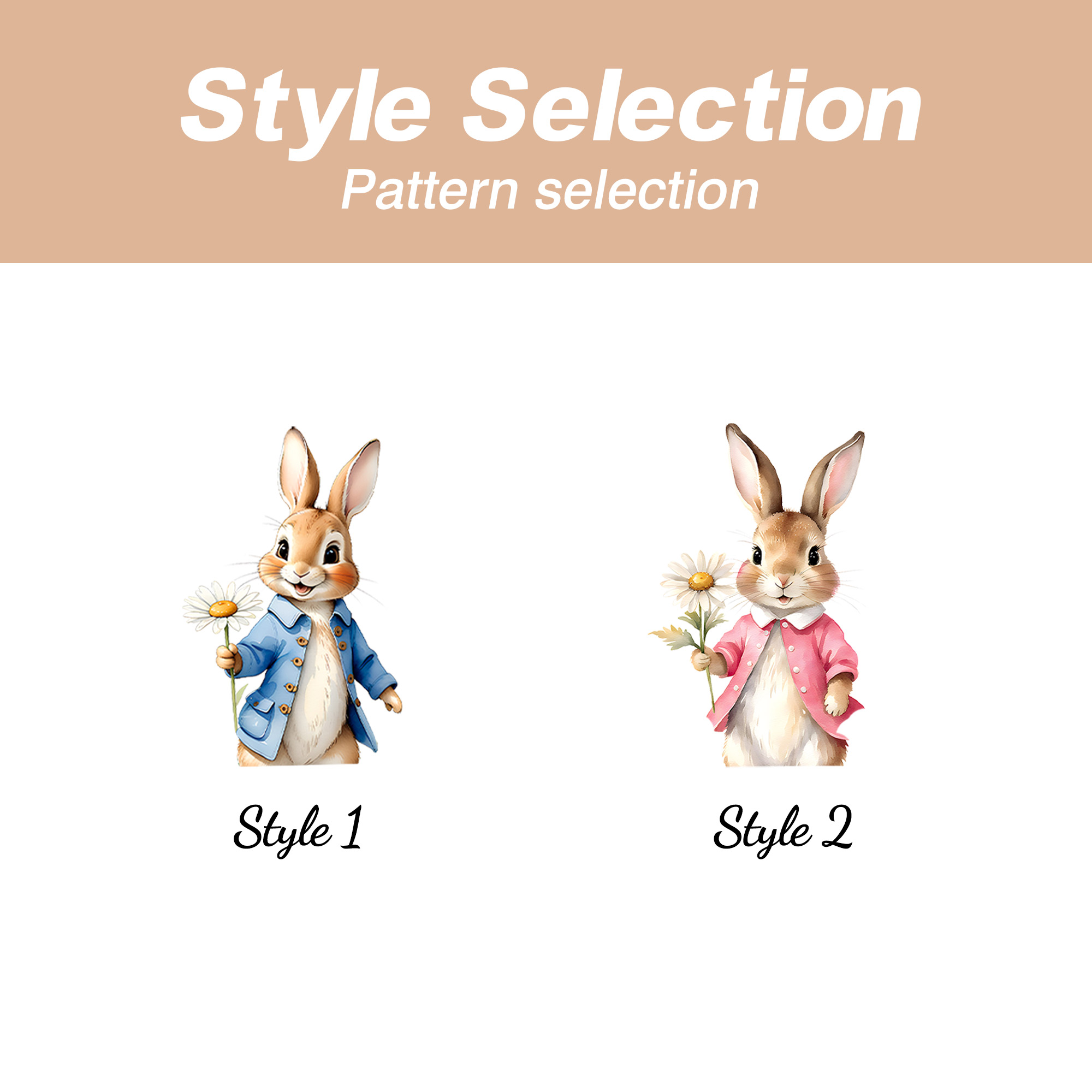 Individuell gestalteter Aquarell-Blumenrahmen mit Schleife und Hasenmotiv, Hasenpuppe, Spielzeug